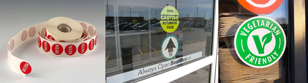 5. Tarrat ikkunoihin ja näyteikkunoihin Jokaisella myymälällä tulisi olla näyteikkuna, joka on sekä houkutteleva että informatiivinen. Tarrat mahdollistavat pysyvien tai kausittaisten somistusten luomisen edullisesti ja vaivattomasti. Tarrat sisältävät usein myymälän logon sekä aukioloajat.